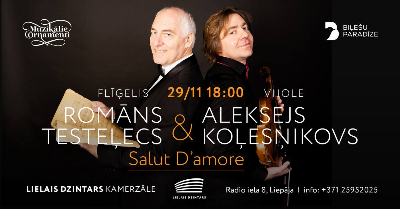 Šis koncerts ir iespēja dzirdēt, kā mūzika pārvēršas gleznā, bet glezna — mūzikā. Aleksejs Kolesņikovs un Romāns Testeļecs ne tikai atskaņo skaņdarbus, bet piepilda tos ar gaisu, gaismu un dziļumu, ļaujot katram klausītājam saredzēt savas skaņas gleznas. Jūs sagaida vakars, kur mūzika iegūst krāsu, bet emocijas kļūst dzīvas.