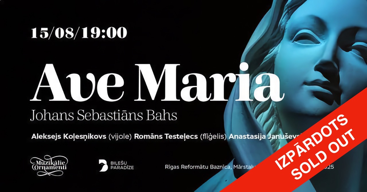 Alekseja KOĻESŅIKOVA vijoles stīgu maģija, Anastasijas JANUŠEVKAS obojas maigums un flīģeļa krāšņums talantīgā klavierspēlētāja Romāna TESTELECA izpildījumā ar programmu “AVE MARIA - Johanna Sebastiāna Baha Ziemassvētku Mistērija”, kura ir veltīta Johana Sebastiāna Baha mūzikai. Izskanēs slavena Čakona ar klavieru pavadījumu, koncerts vijolei un obojai un izsmalcināta “Ave Maria”.